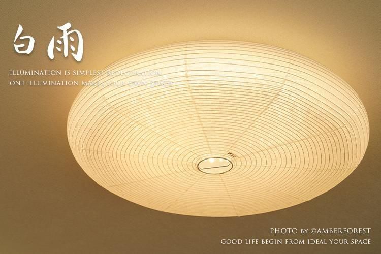 白雨 (TYS-32)はLEDを使用した美濃和紙のシーリングライトです。リニューアルにより明るさが4000lmにアップ、調光段数も細かい設定が可能になりました。